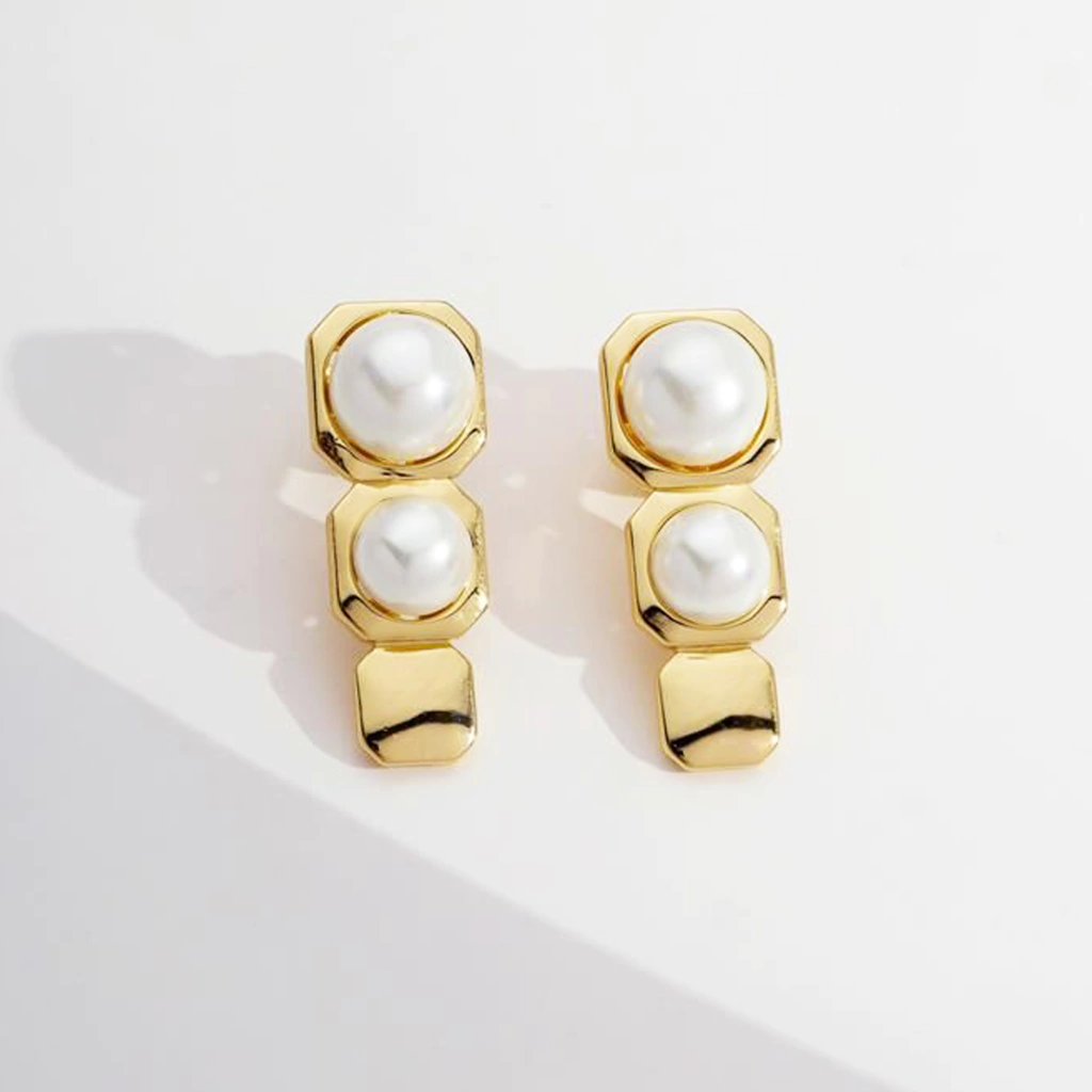 Este brinco com quadrados lisos e pérolas Shell é a definição de elegância e estilo.